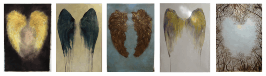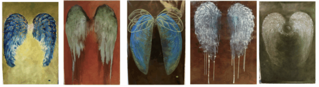 J’ai peint des ailes dès 2006. Elles sont apparues dans mon atelier alors que je n’avais pas encore conscience de mon besoin de m’envoler d’un mariage qui me clouait au sol. Il y avait déjà à cette époque l’envie qu’on puisse les essayer. L’une des paires avaient même des os à vifs qui témoignaient d’un arrachement. Je les avais exposé à la Galerie Myriam H. pour l’exposition « Se sentir pousser des ailes ».
